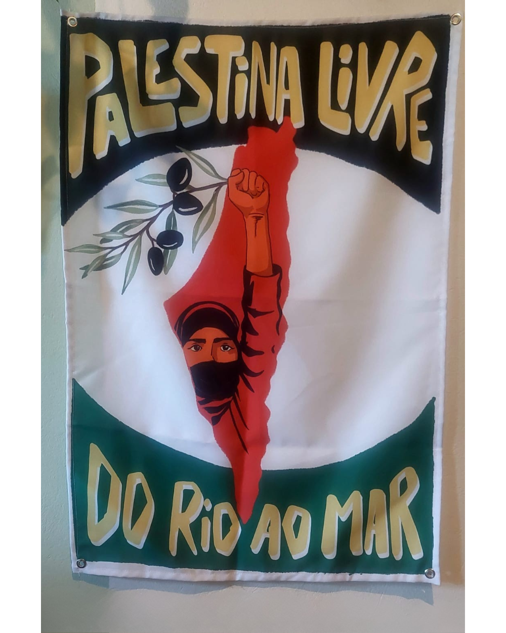 Bandeira em tecido oxford com ilhos nos quatro cantos, medidas aproximadas 48×68. Estampa exclusiva feita pela artista @empi.nadas, bandeira personalizada no sistema de sublimação.